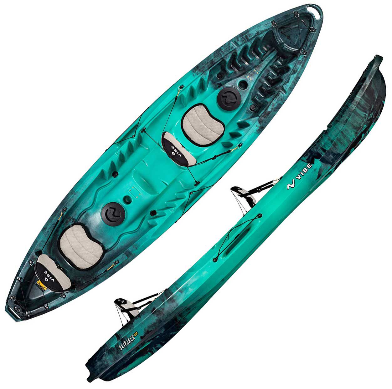 Paddle keepers and carry handles ensure practical use while the adjustable seat back and footrests provide comfort.